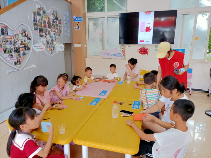 在支付宝公益爱心网友和壹基金的支持下,9月27日,瑞金壹基金儿童服务站现场组织了一场“以剪代笔 纸上生花”手工剪纸活动,延伸讨论植物保护——“剪纸虽美,但真树需呵护”,引申环保理念。